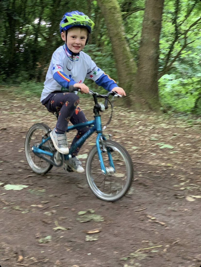 He enjoys having races with his big brother, riding over his stunt ramp and exploring new places on his bike.