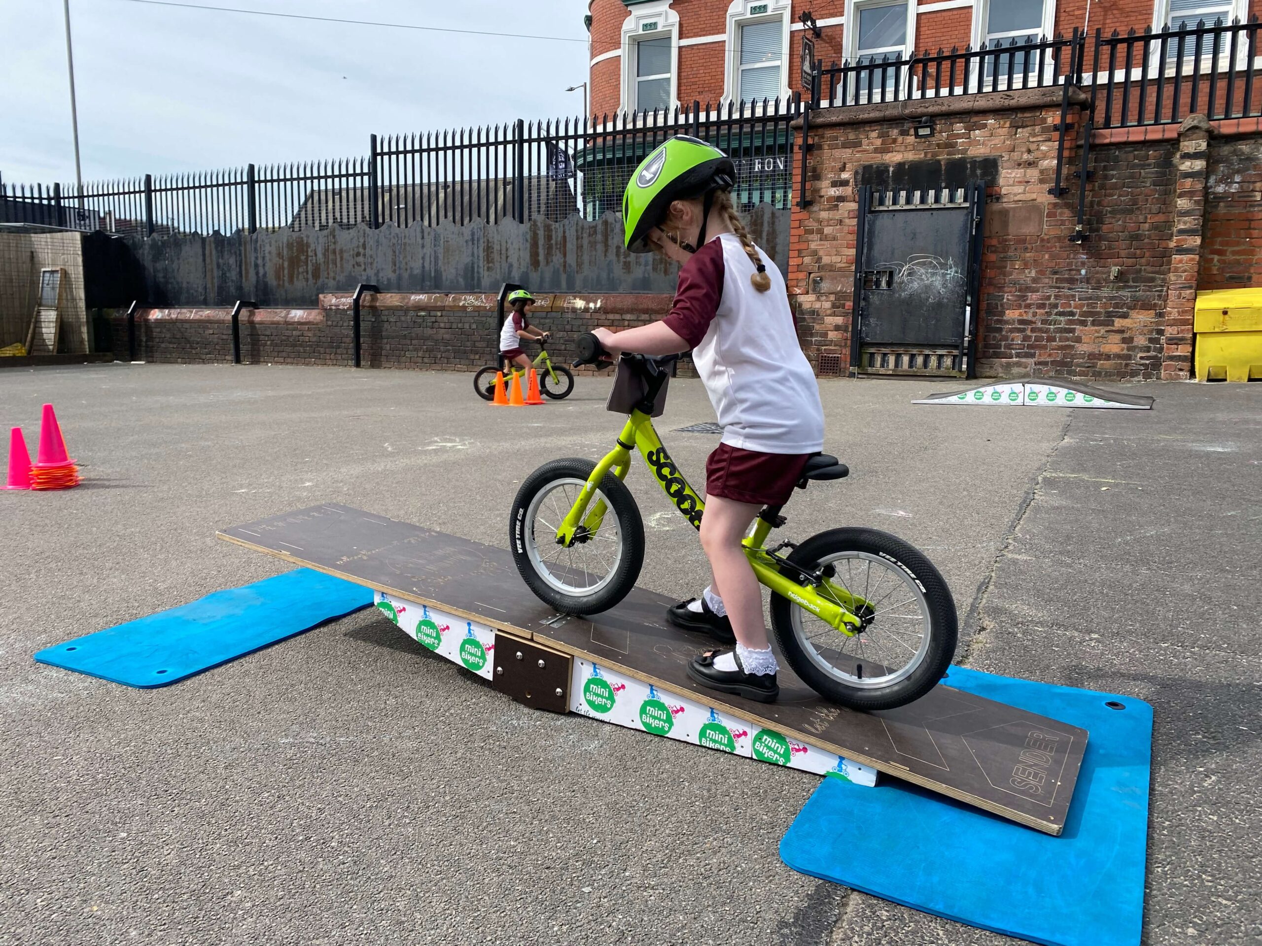 Children are equipped to ride a balance bike to and from school.On completion children are ready for the transition to progress to the Minibikers pedal bike course.
